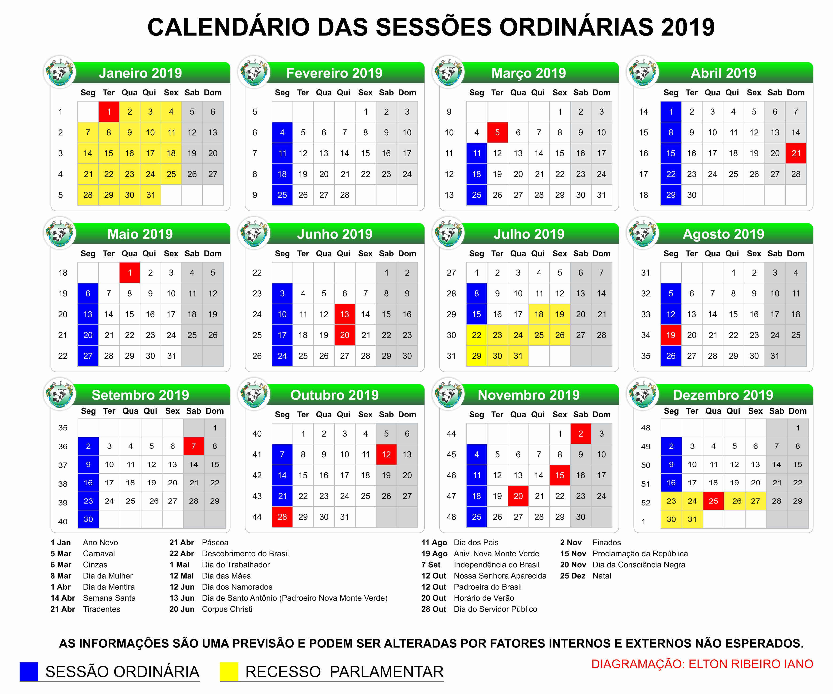 Calendário das Sessões 2019